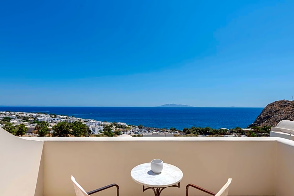 Boasting Aegean Sea view from its furnished balcony, this air-conditioned room is fitted with iron beds and includes a flat-screen satellite TV, fridge and hairdryer.